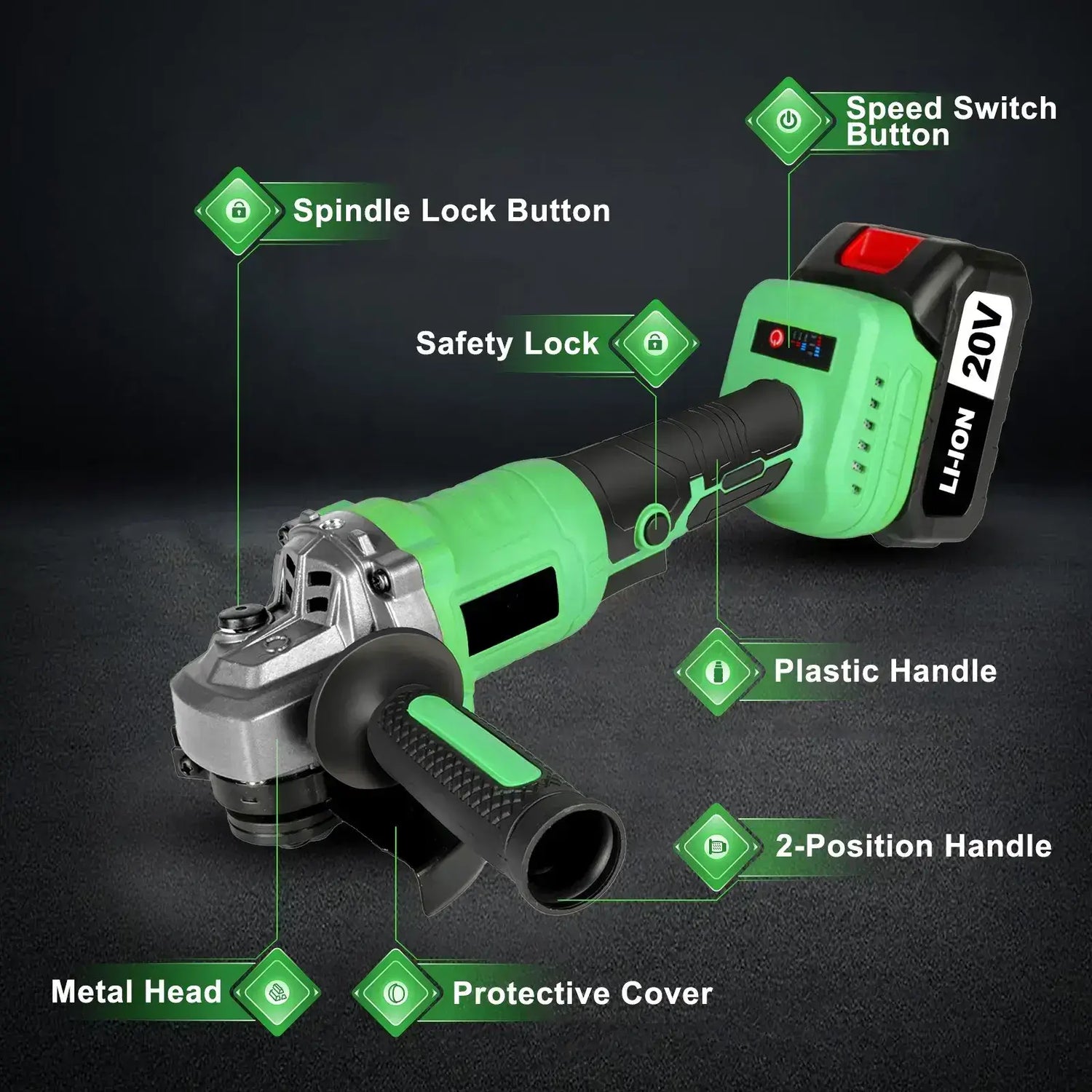 Cordless Brushless Angle Grinder – 20V | 3-Speed | 4000mAh Dual Battery