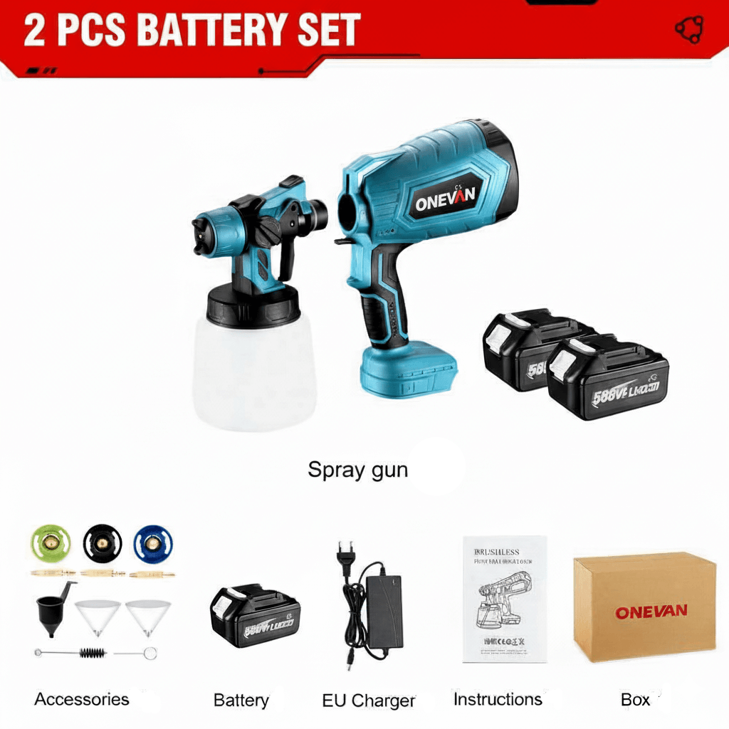 This powerful sprayer features dual rechargeable batteries, a large 1000ml paint container, and three spray patterns for perfect control and smooth, even coverage. With its adjustable flow knob, you can easily regulate paint output for precise results on corners, edges, and wide surfaces.