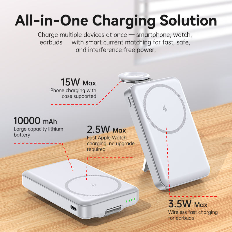 Magnetic 10000mAh Slim Power Bank with 360° Adjustable Holder